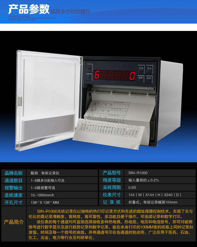 應用行業:SIN-R1000有紙記錄儀目前廣泛適用于冶金、醫藥、石油、化工、電力、電力等行業及科研單位。